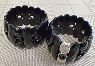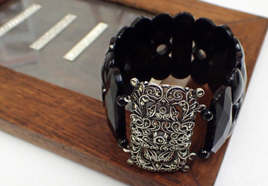 漆黒のジェットに100年前のマルカジットジュエリーを組み合わせた世界にひとつだけのバングルです。ゴージャス感が漂う逸品に仕上がりました。