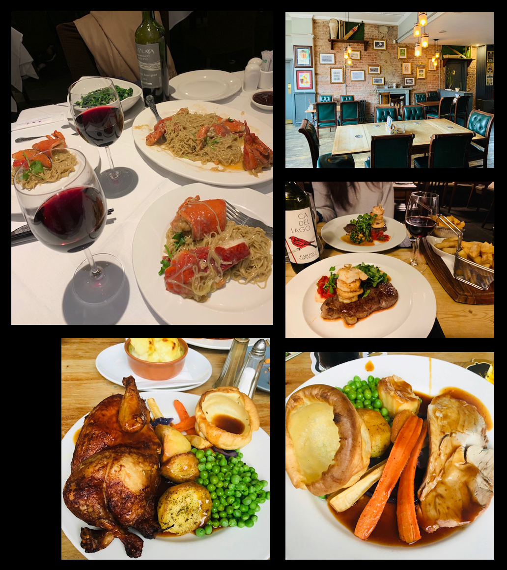 写真上段左から マンダリンキッチンのロブスターヌードル セントジョーンズのクラッシックパブ