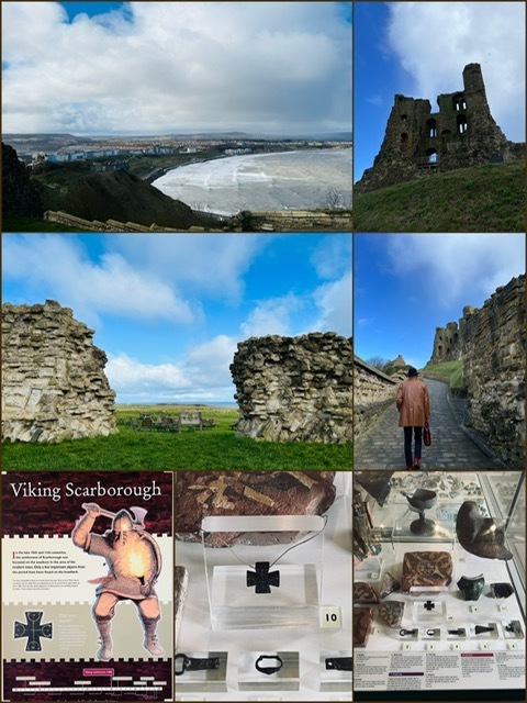 ウィットビーに行く途中、スカーボロ(サイモンとガーファンクルのうたで有名)に立ち寄り、スカーボロ城跡を見学しました。断崖絶壁に城があります。小さな手作り資料ブースがあり見学しました。何と教会跡の出土品の中にジェットのクロスが!珍しく銀象嵌が施されています。ジェット出土品の中でも細工された作品は珍しいです。感動しました。ジェットに導かれたようで。